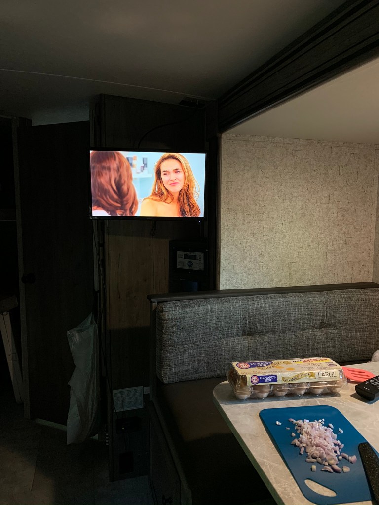 It doesn’t feel like you’re roughing it when you can make breakfast and watch Selling Sunset.