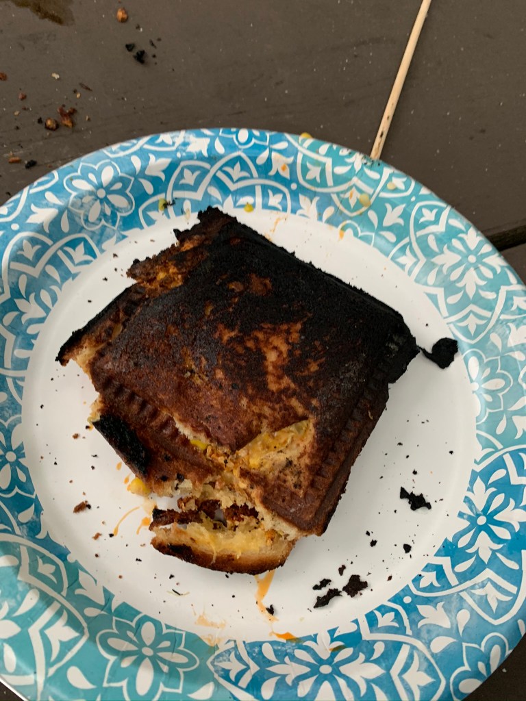 The mountain pies burn really fast if you put them directly into the fire.