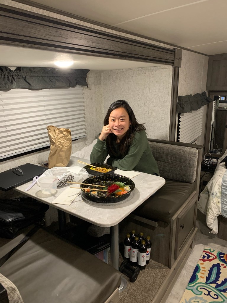 We didn’t feel like waiting for an hour for a table, so we picked some up to go and ate in the camper.