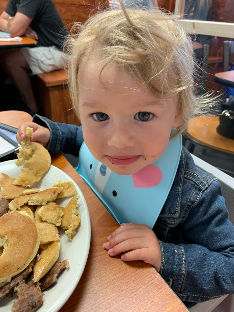 We got to meet up with the Birthday Girl for breakfast and she was LOVING the pancakes and sausage.