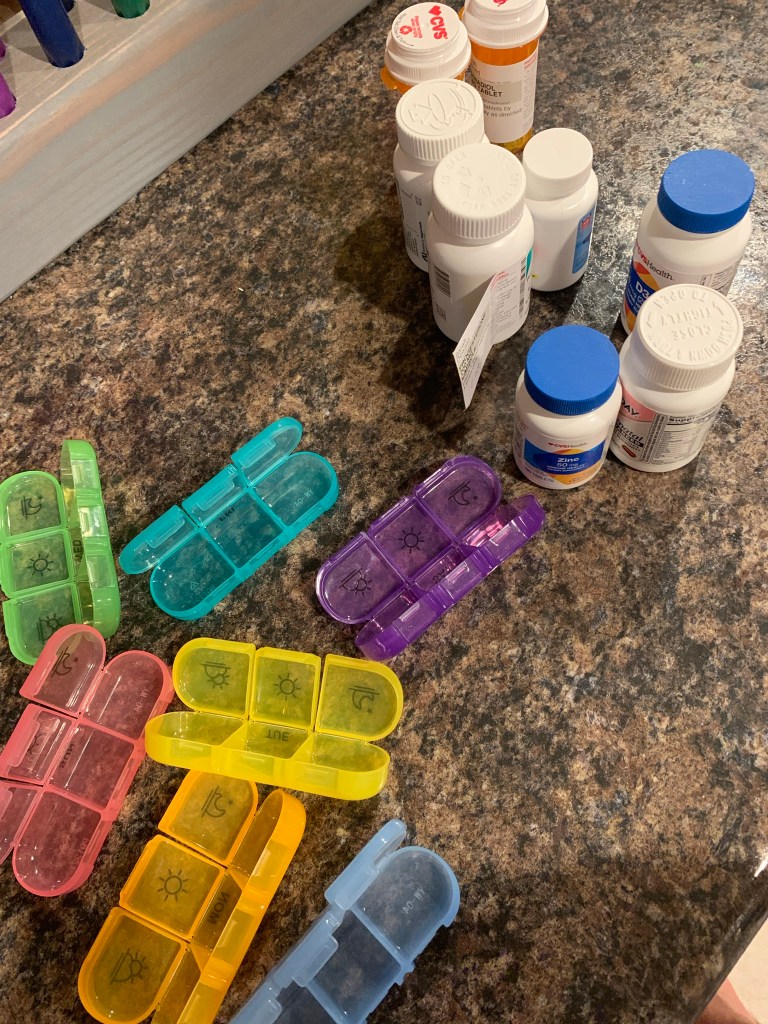 I got this pill organizer and it’s awesome for keeping everything straight.