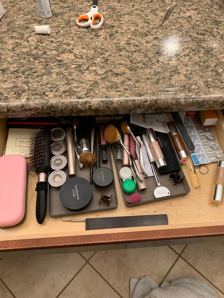 And my makeup is marginally more organized, but I think it might be because there’s less of it.