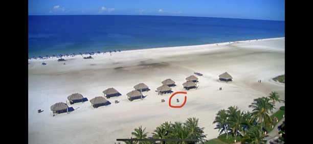 Apparently there is a webcam to see what’s happening at the cabanas, and as you can see in the circle, we are waving at the camera. lol