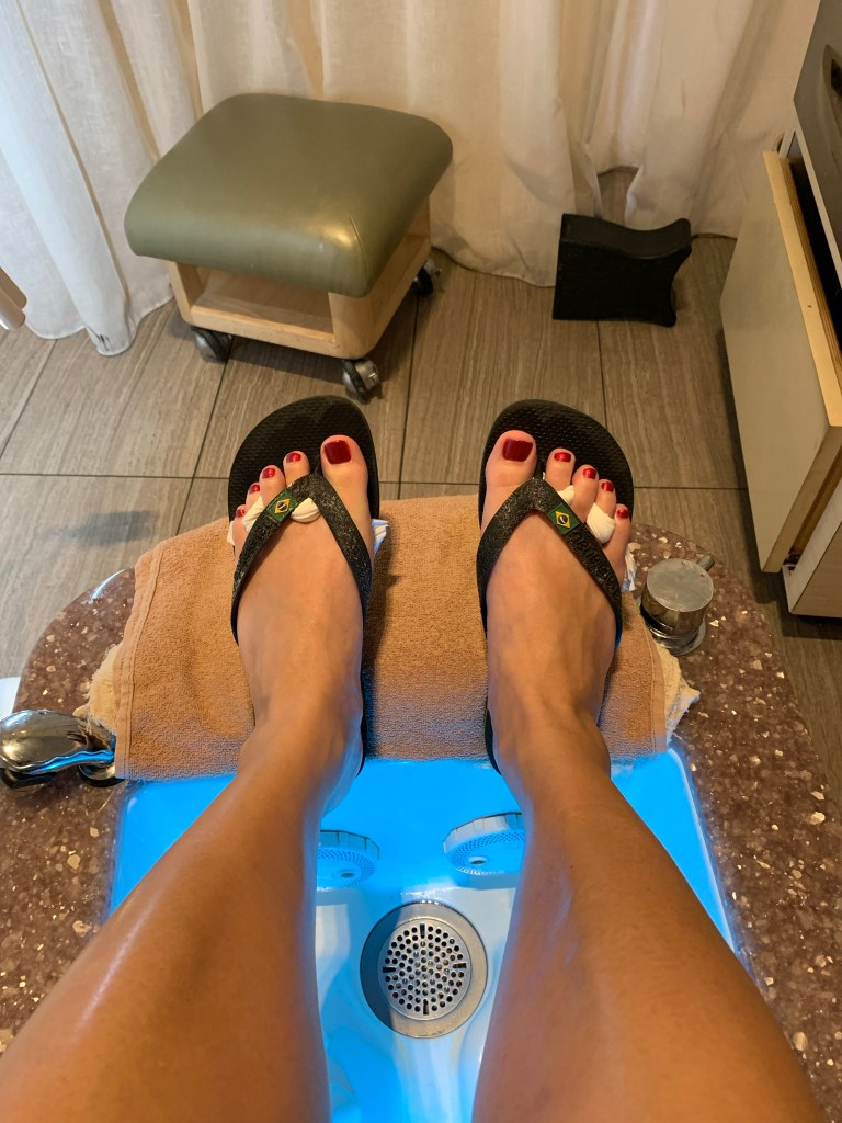 I treated myself to a pedicure and did not regret it for one second. The spa even had a special “spa” pool for anyone who had a treatment and wanted to just relax at a quiet pool. It sounds amazing but The Hubster couldn’t come with me and while I love me some quiet time at the pool, I’m pretty sure I’d be the one who got kicked out for talking. Or laughing. Or generally causing a rukus. 🙂